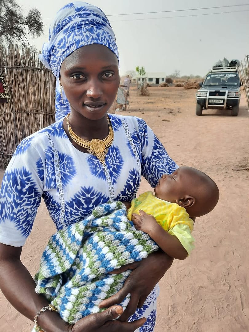 Een groep vrijwilligers in Meddo haakt dekentjes om baby's in Gambia warm te houden.