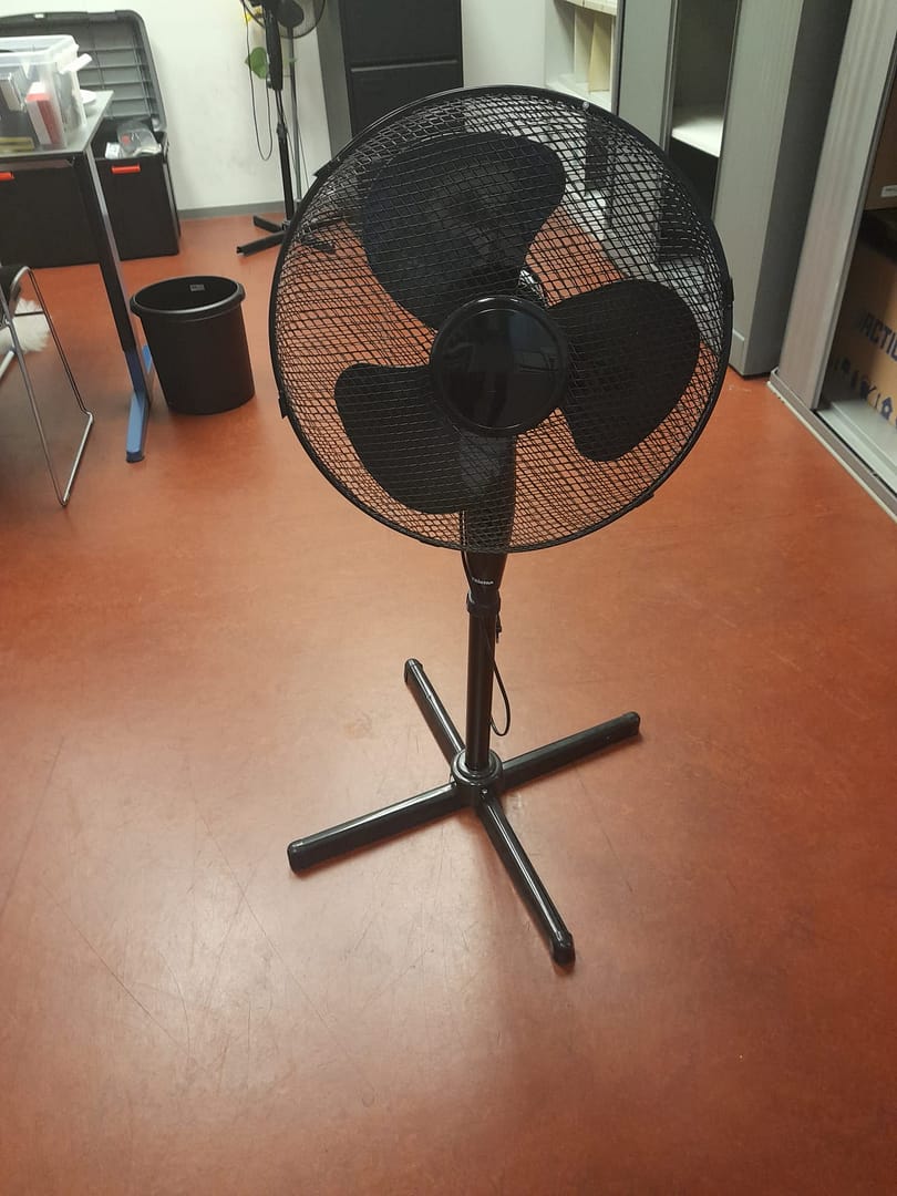 twee zwarte staande ventilatoren aangeboden wegens verhuizing. Moeten opgehaald worden voor 04-02-2025 in Doetinchem.